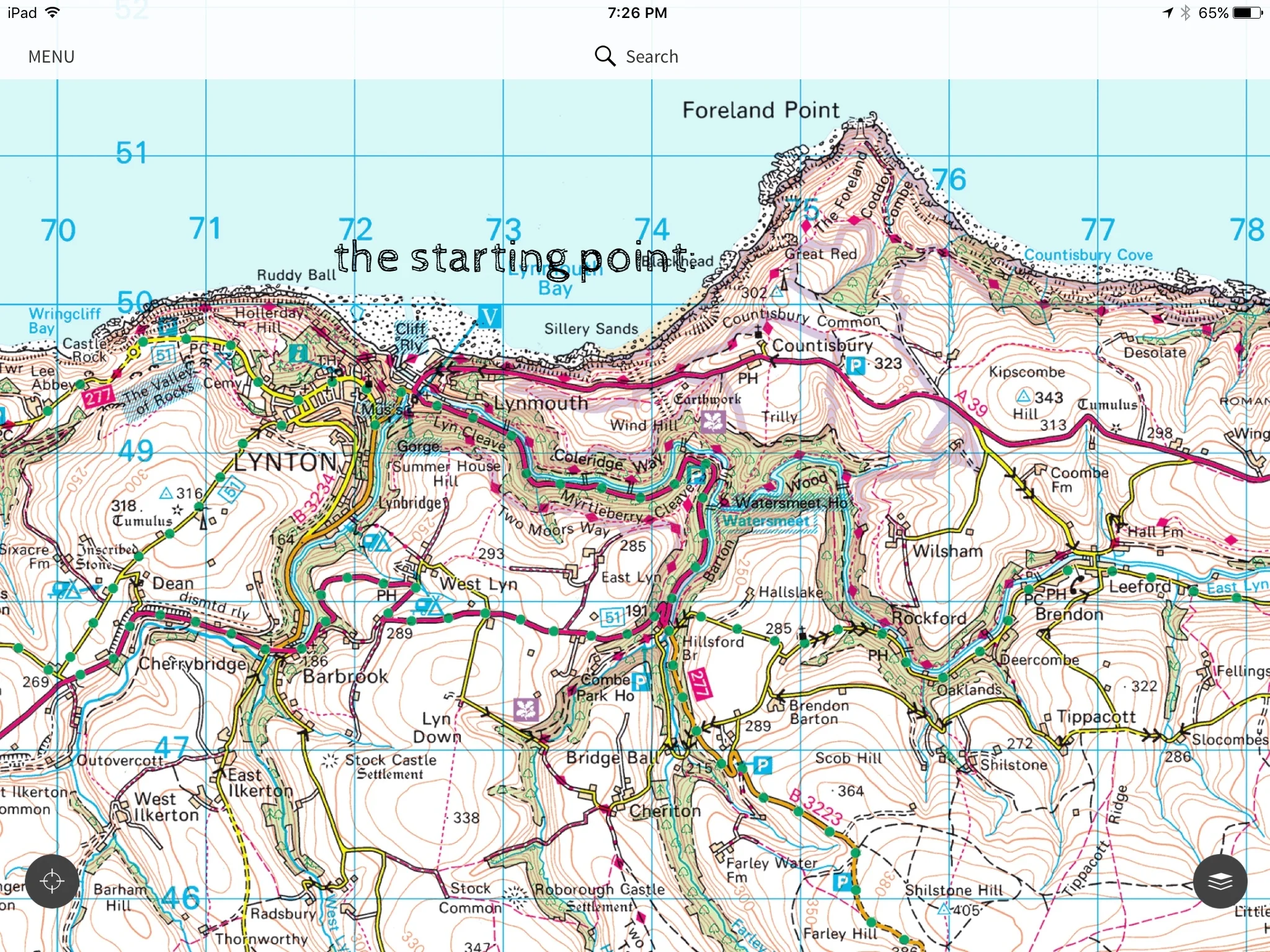 When plotting my route, I downloaded and joined the Ordnance Survey apps and website - www.osmaps.com - and completely immersed myself in their incredibly detailed and tantalizing maps. Yes, tantalizing! It does make you feel confident, too, that you will never be lost and that everything on the map is WORTH mapping, if that makes sense. I mean, if that Hoaroak Tree and the Ruined Cross(as opposed to a non-ruined cross?) is painstakingly marked and charted, it must be worth flying across the world to find. I looked for a route that got me from one particularly stunning beach on the Bristol Channel to an equally stunning beach on the English Channel. That felt like a good way to bookend the trip, and it would give me the ability to use the Two Moors Way for the majority of the walk. The Two Moors Way is famous, so of course it will be very clearly marked at all times, and I'll never find myself wandering randomly in a sea of moorland grass, free of all landmarks and phone signal, right???